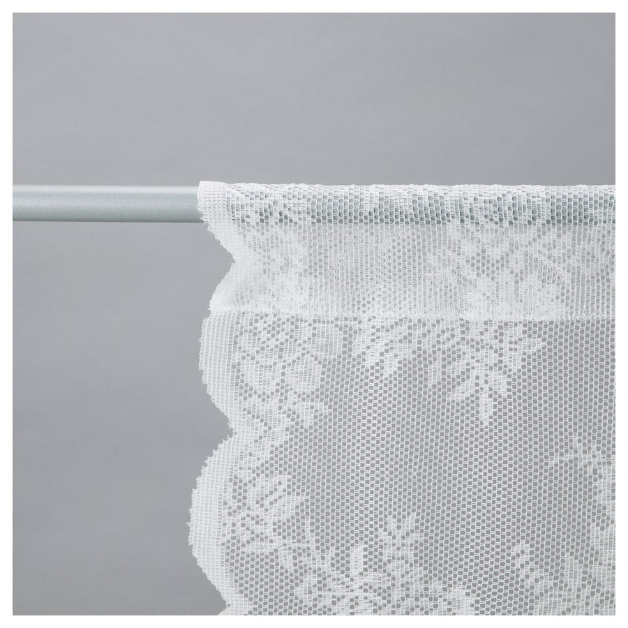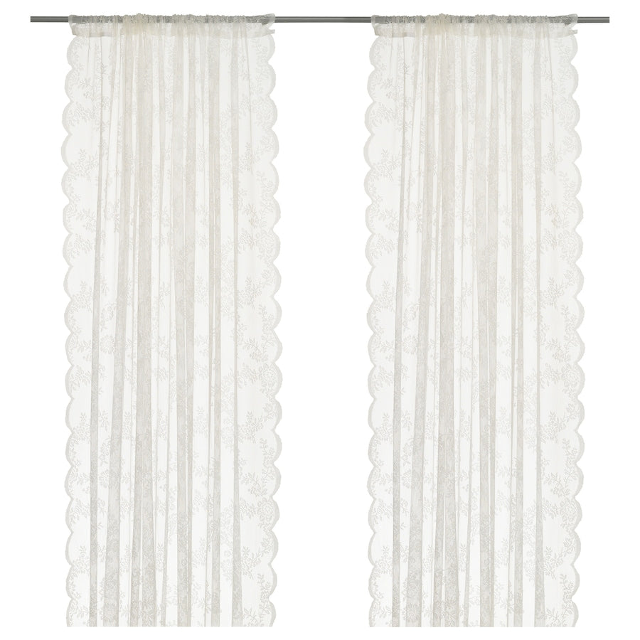 ALVINE SPETS net curtains offer the charm of lace with a delicate floral pattern and curved edges. The sheer fabric lets in light and gives a sense of privacy. Discreet, timeless appeal that doesn’t tire.