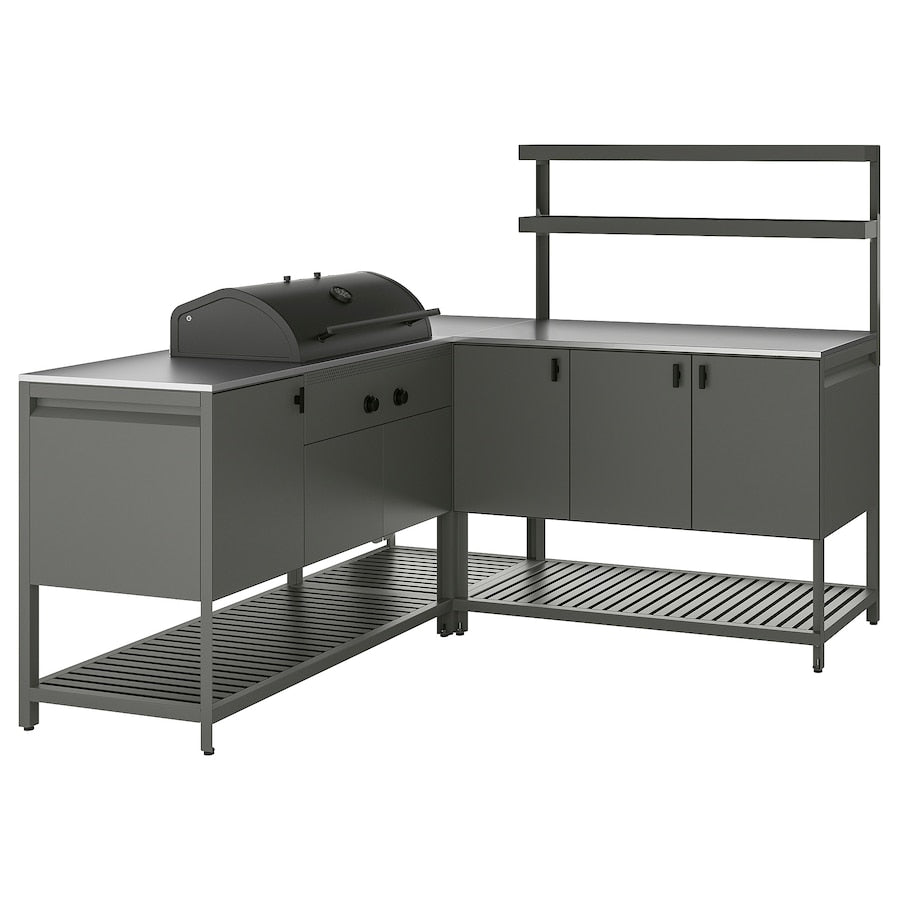 BÅTSKÄR Outdoor kitchen w charcoal barbecue, dark grey, 180x180x152 cm
