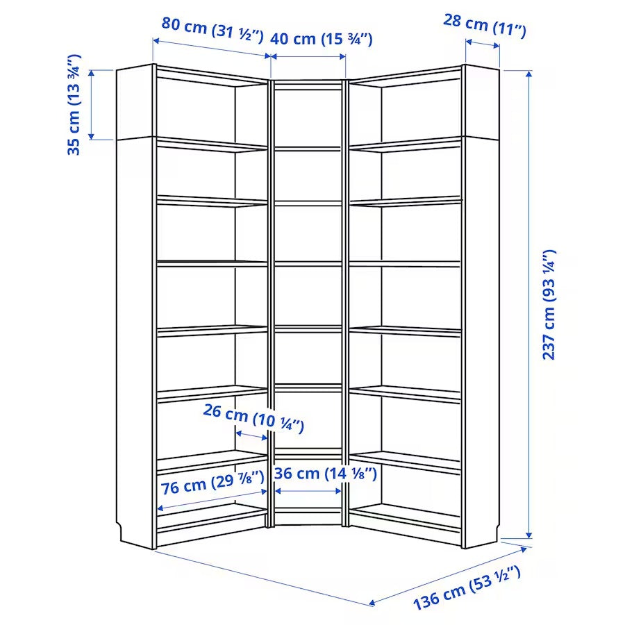 BILLY Bookcase corner comb w ext units, white, 136/136x28x237 cm