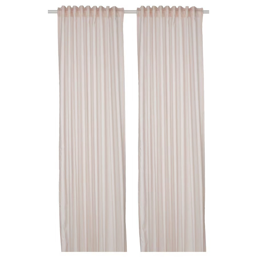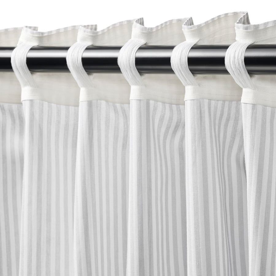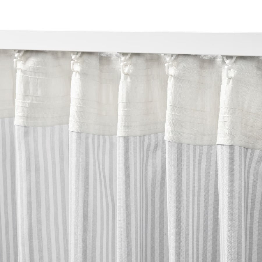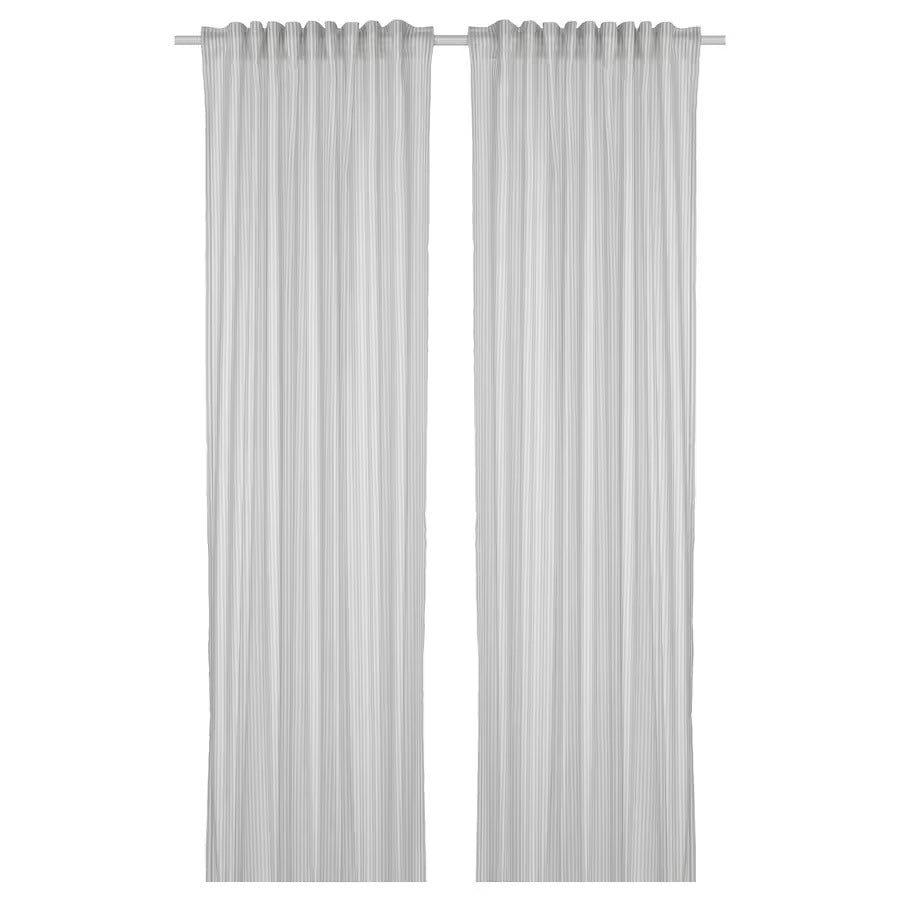 BYMOTT Curtains, 1 pair, white/light grey striped, 120x250 cm