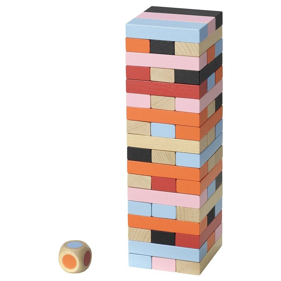 Stacking games are special – the concentration and joy when it all stays stable. You have to think right away to avoid starting over – and imagine if it all tumbles down! Simple rules, lots of laughs.