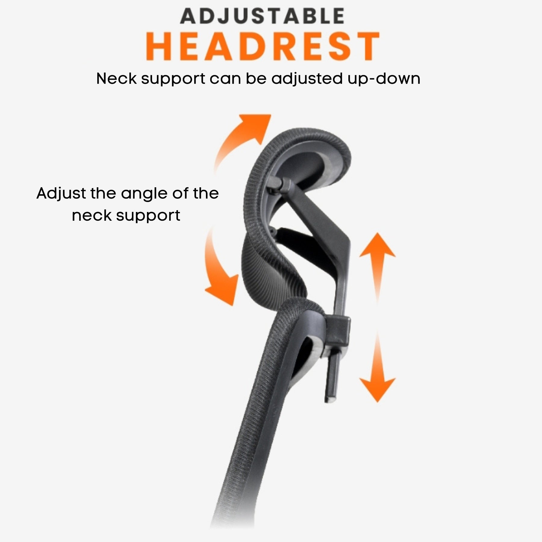 Features/Usage Headrest can be adjusted in angle and up-down Backrest has Lumbar Protection Support system to support the waist/back curve to be attached to the chair Backrest flexible tilt tension adjustment Armrest can be adjusted in height (Armrest height adjustment)