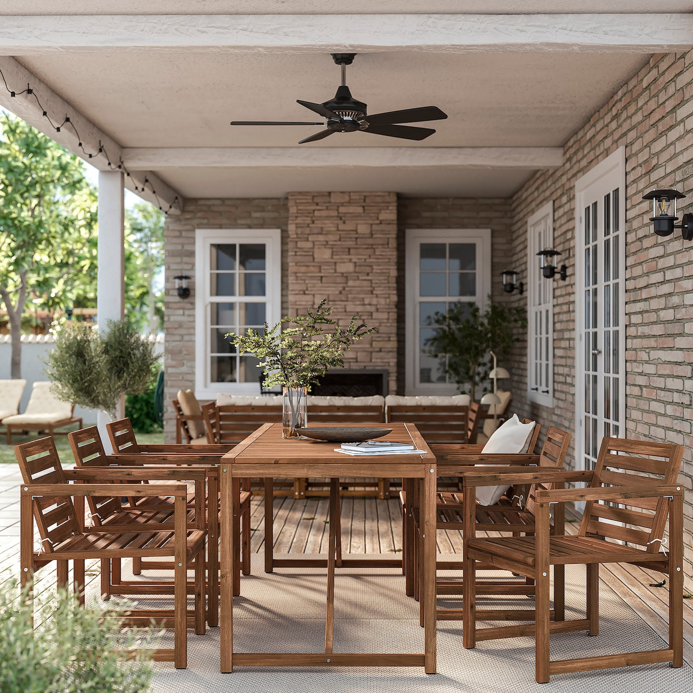 NÄMMARÖ Table+6 chairs w armrests, outdoor, light brown stained, 200 cm