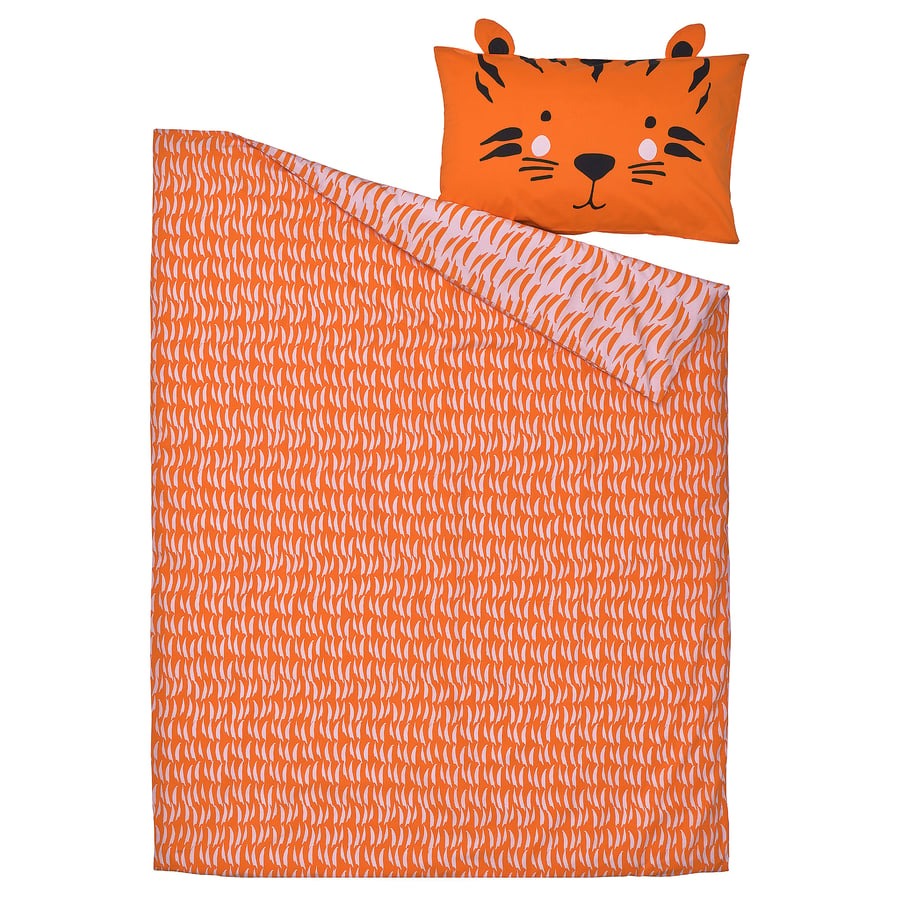 NATTHÄGER Duvet cover and pillowcase, orange/tiger, 150x200/50x80 cm