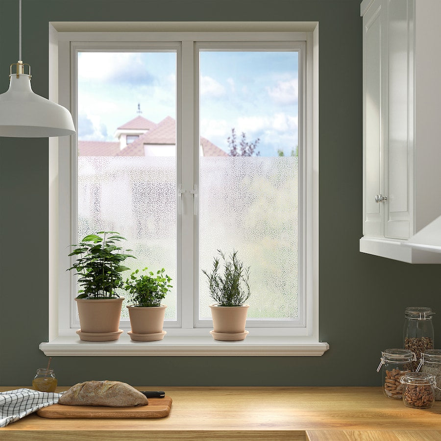 The window film creates privacy by preventing people outside from seeing directly into the room while letting daylight in. Easy to cut to fit different window sizes.