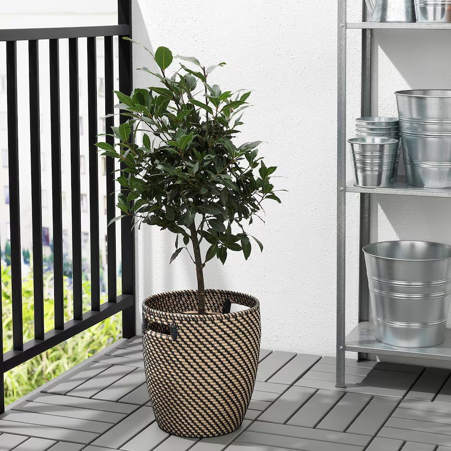RÅGKORN Plant pot, in/outdoor dark grey/beige, 24 cm