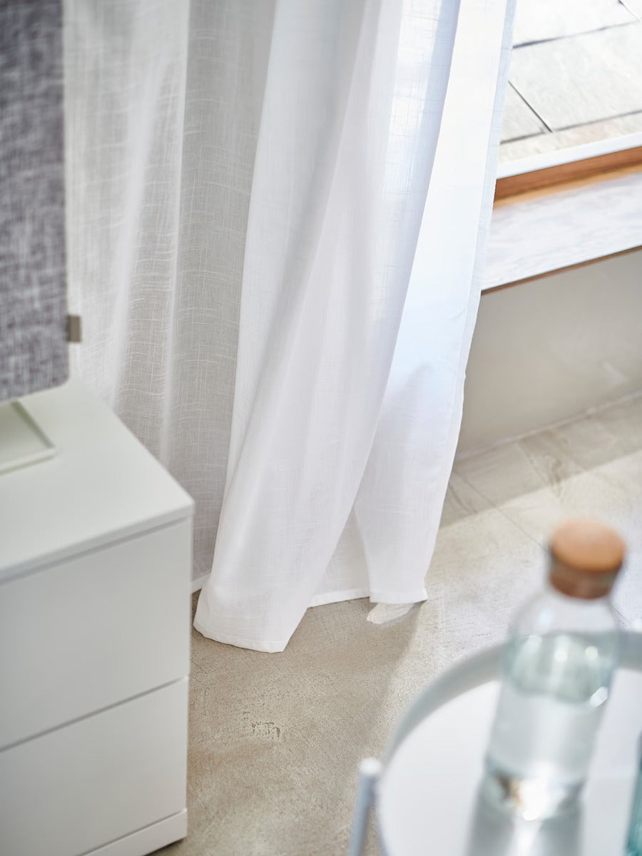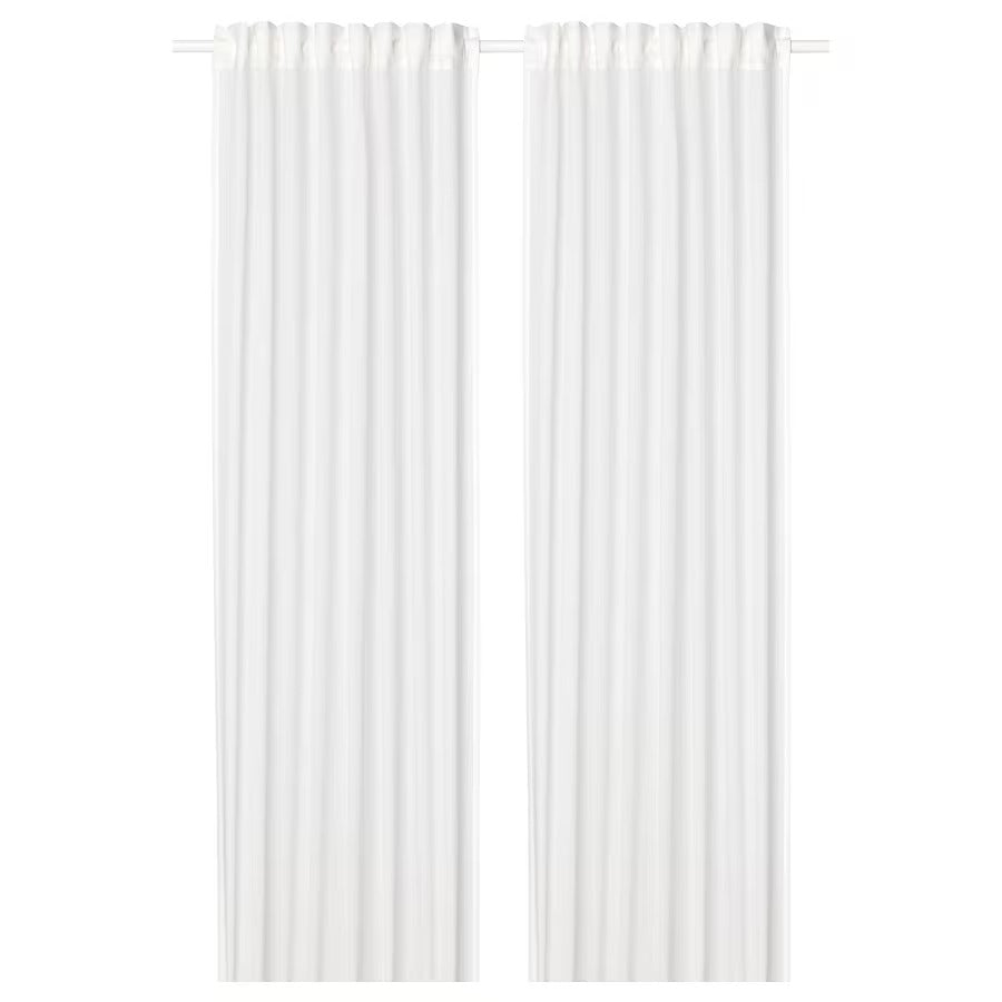 SILVERLÖNN sheer curtains in white let in light while softening the harsh rays of the sun and preventing glare. Gorgeous linen-like texture in 100% cotton. Blends easily and ideal for layered solutions.