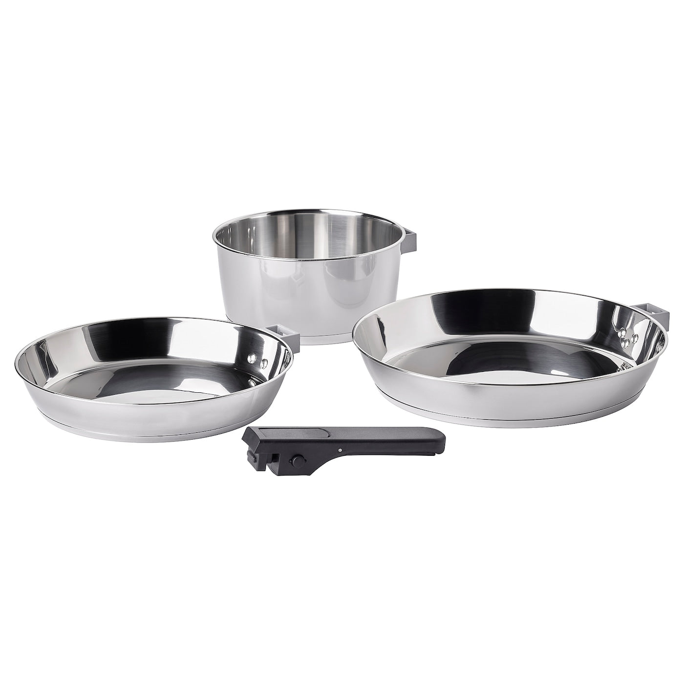 SLÄTROCKA Cookware kit with detachable handle, stainless steel