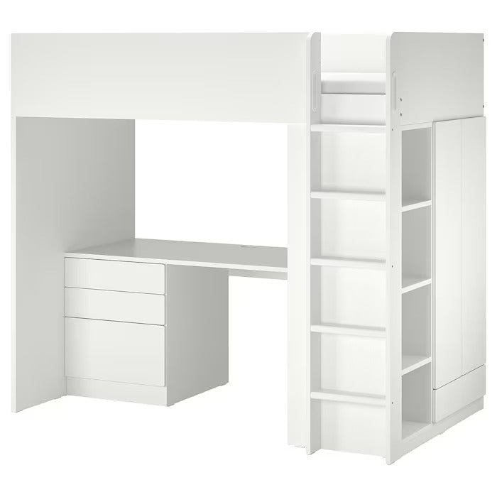 SMÅSTAD Loft bed, white white/with desk with 4 drawers, 90x200 cm