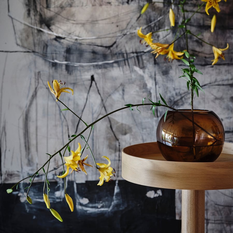 This decorative vase in thick, brown-coloured glass is created by a skilled glassblower. A work of art with an organic shape that adorns its place wherever you choose to put it – with or without flowers.