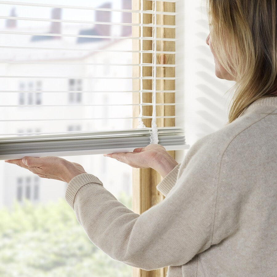 The non-porous aluminum slats make the blinds light and flexible, and you can wipe them clean with a damp cloth.